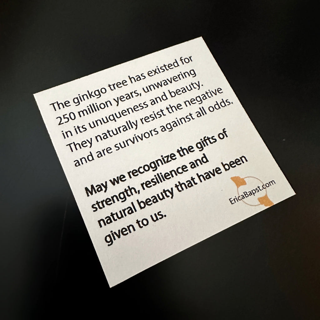 Part of the Ginkgo Collection - Handmade inspirational jewelry, this piece is accompanied by a card with the following: